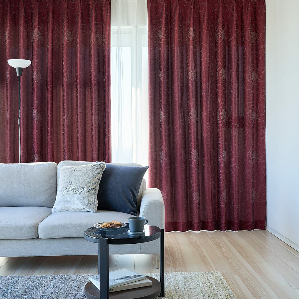 光沢糸が織りなす上品なジャカード織の生地が魅力の3級遮光カーテン。 まぶしい日差しを遮りつつ、柔らかな光を室内に取り込むので、寝室にもリビングにも最適です。 大柄の花柄デザインが、お部屋のアクセントになります。