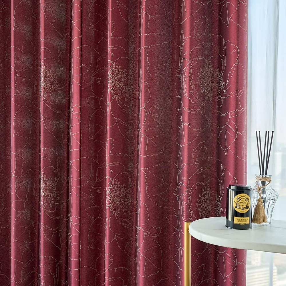 ジャガード織のカーテンで、暮らしに彩りを。大柄の花柄が、お部屋を華やかに演出します。 3級遮光なので、柔らかな光が差し込み、心地よい空間を創出します。 このカーテンと過ごすことで、 毎日が特別なひとときになります。
