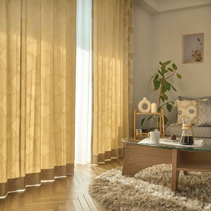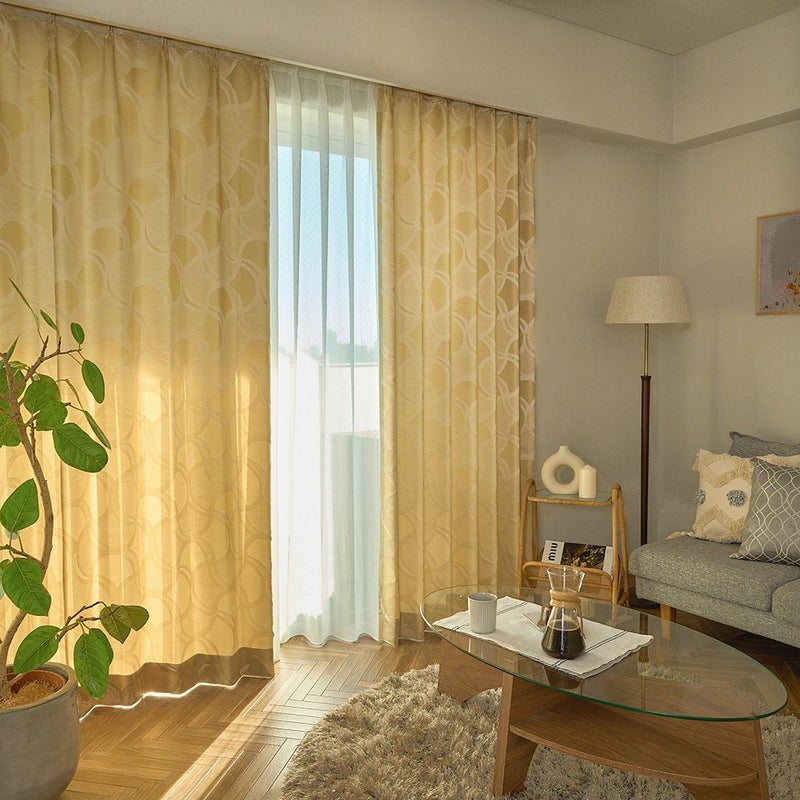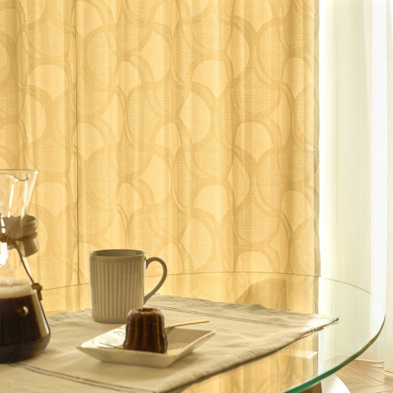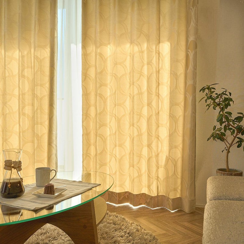 非遮光のカーテンの魅力は、何といっても時間帯や季節によって異なる光の表情を楽しむことができること。さりげない幾何学模様が陽の光とミックスされることで、お部屋にさりげない個性をプラス。織りで表現されたデザインは、上品で落ち着きのある印象を与えます。