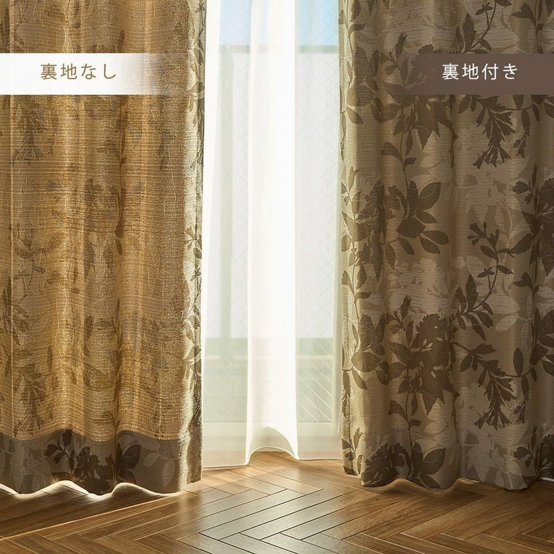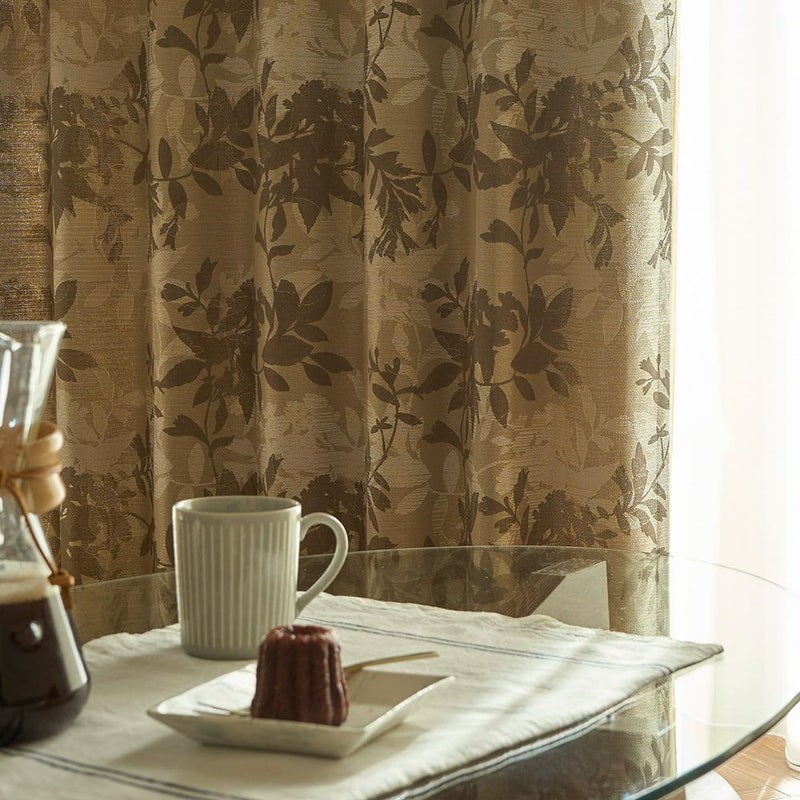 数量限定! リーフ柄が美しい、非遮光ジャガードカーテン