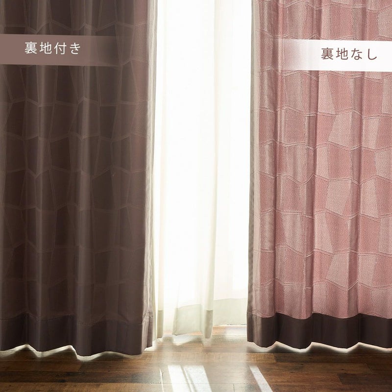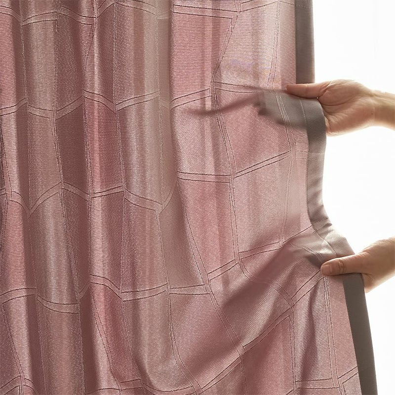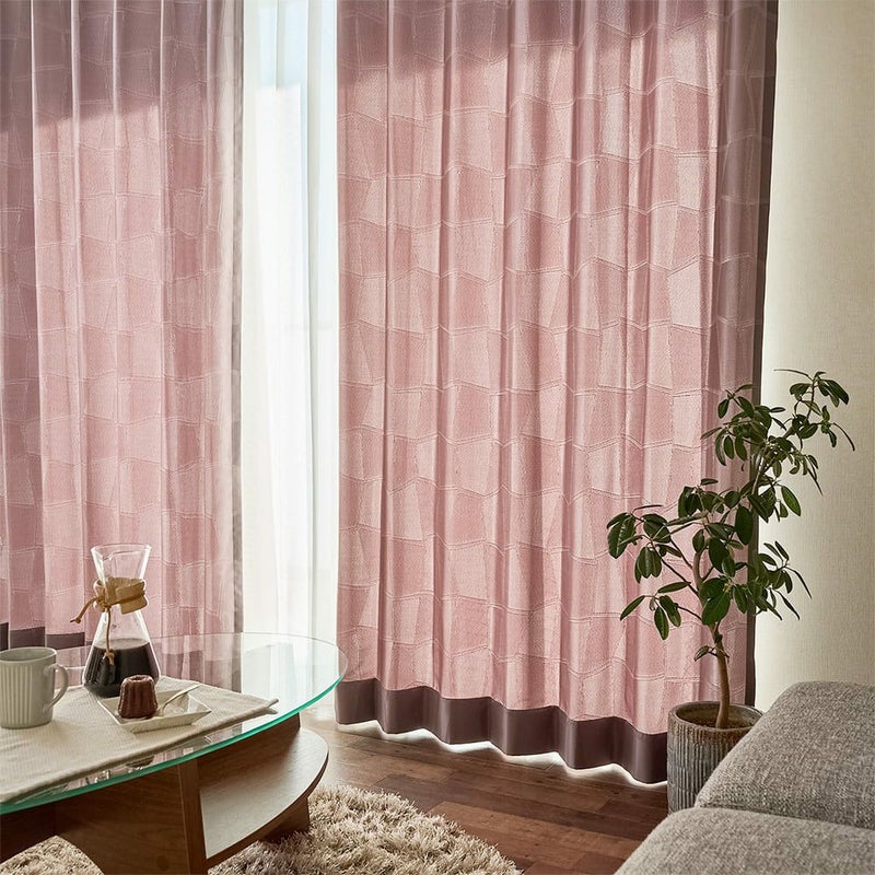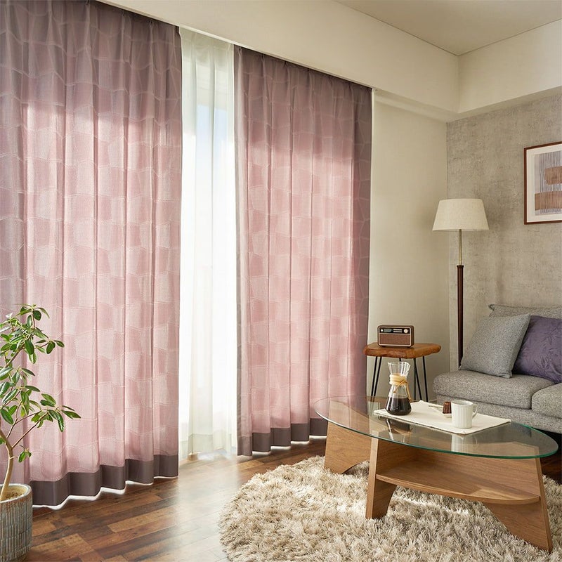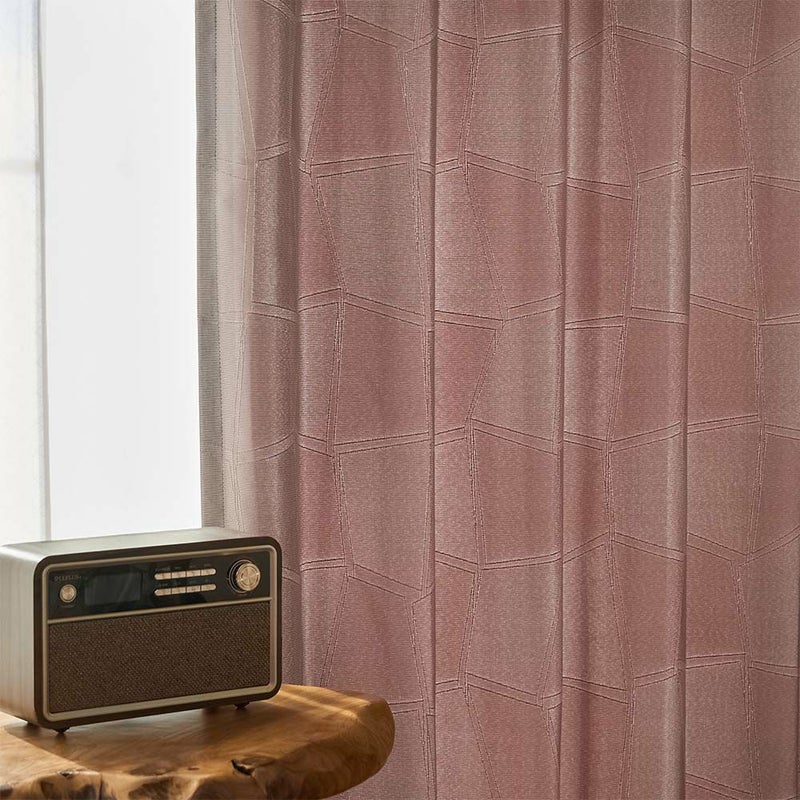 光沢感のあるサテン生地を、ナチュラルモダンな雰囲気に織り上げた幾何学模様のカーテンです。非遮光なので、陽の光を優しく取り込み穏やかな時間が流れる空間に。