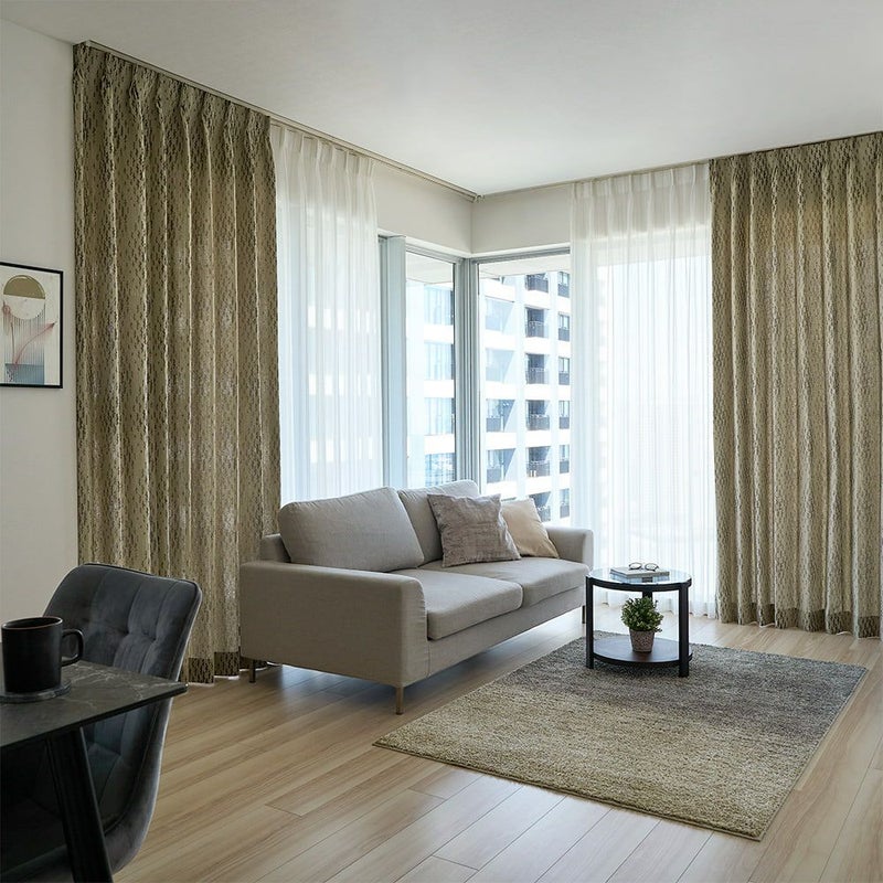 高層マンションにも相応しい防炎機能付き。 毎日を過ごすリラックス空間に、安心感をもたらします。