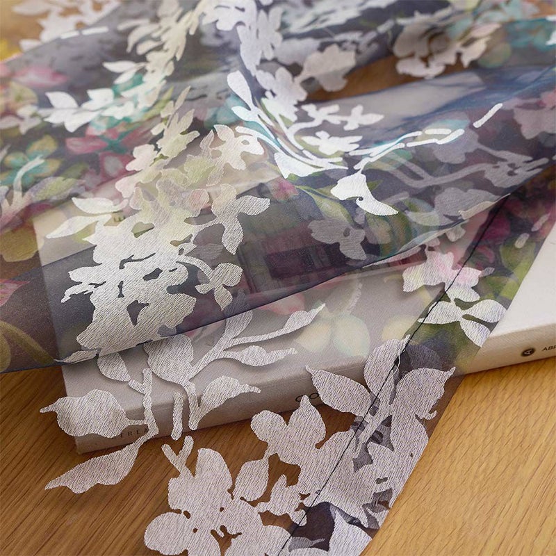 繊細に表現された美しい花柄が、上品で高級感のあるテキスタイル。 オパール加工により、花柄が浮かび上がるような、ニュアンス感のあるデザインが魅力です。