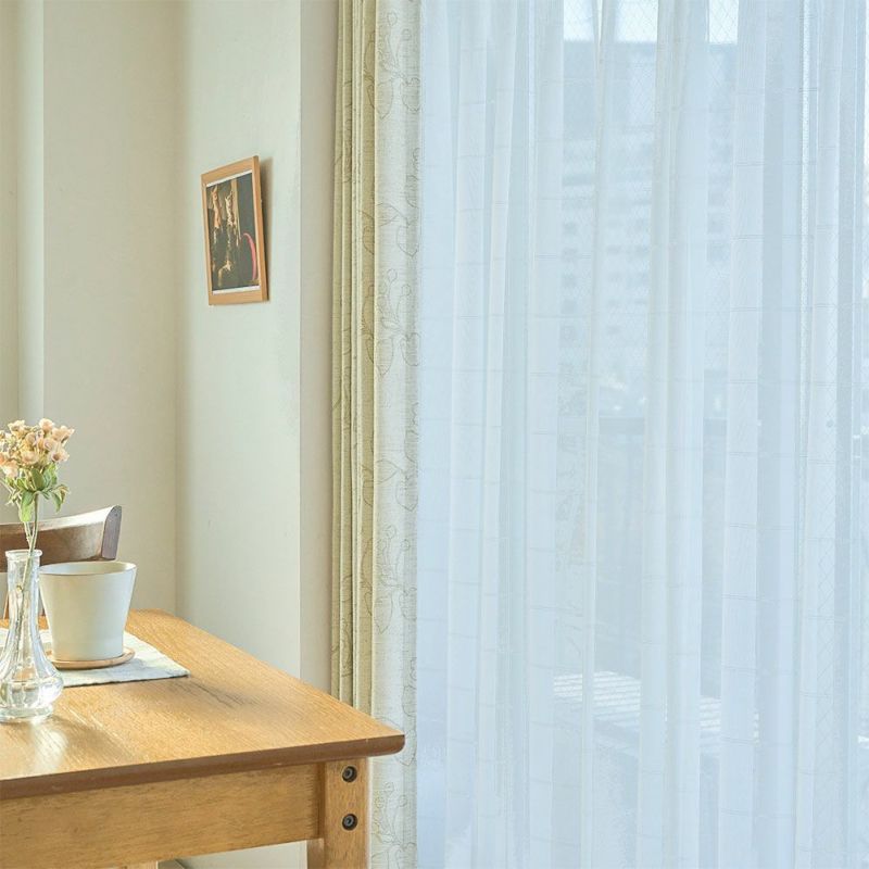 シンプルなボーダー柄は、無駄のないラインと繊細な透け感が魅力で、空間に静かな美しさと品を与えてくれます。風が通り抜けるたびに軽やかに揺れる姿は、お部屋の雰囲気を明るく開放的に、より一層の心地よさを演出します。