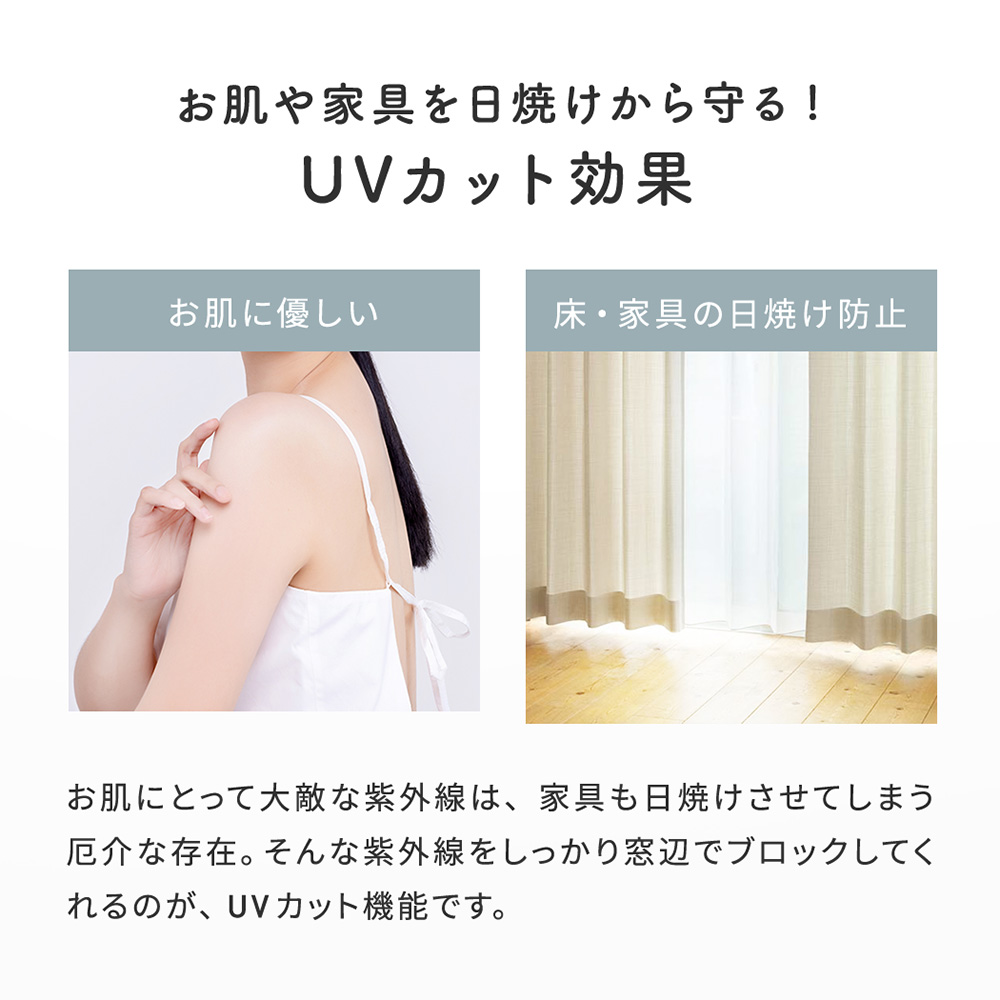洗練されたデザインに加えて、機能面も充実。 遮熱、遮像、UVカット機能つきだから、プライバシーやお肌を守りながら、お部屋を快適に保ってくれます。 快適に明るい光を取り込み、開放感あふれる空間を演出してくれます。
