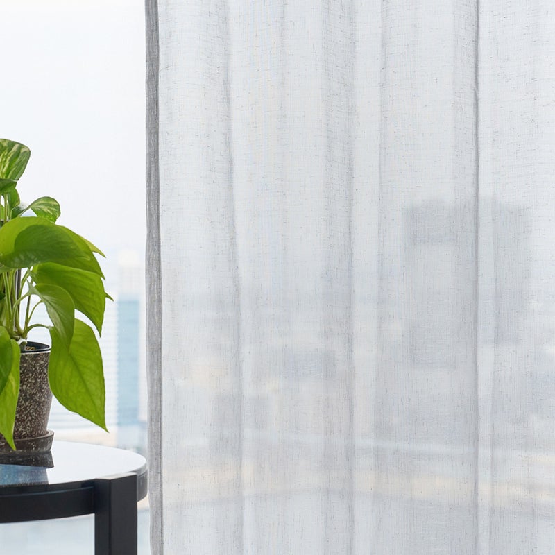 やわらかなグレーカラーとさりげないネップ感が、昼間の光を穏やかにコントロール。リラックス重視の休日に心地よい明るさを保ちます。 -