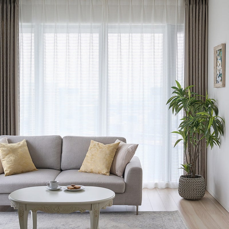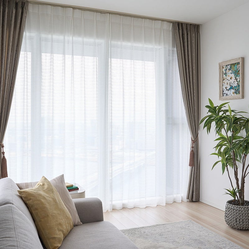 外の光をやわらかく取り込みながら、ほどよい透け感で軽やかな窓辺に。明るさと心地よさを両立するレースカーテン。