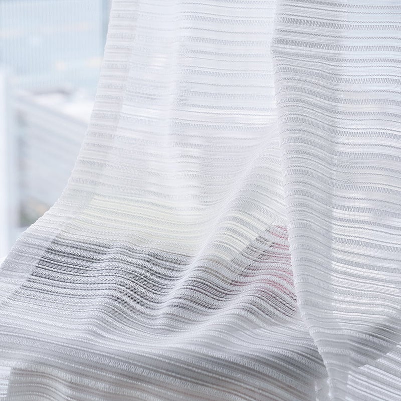 織りの変化で表現したボーダー柄が、光によって繊細な陰影を演出。シンプルながら奥行きのあるデザインが窓辺に印象的な表情を演出。