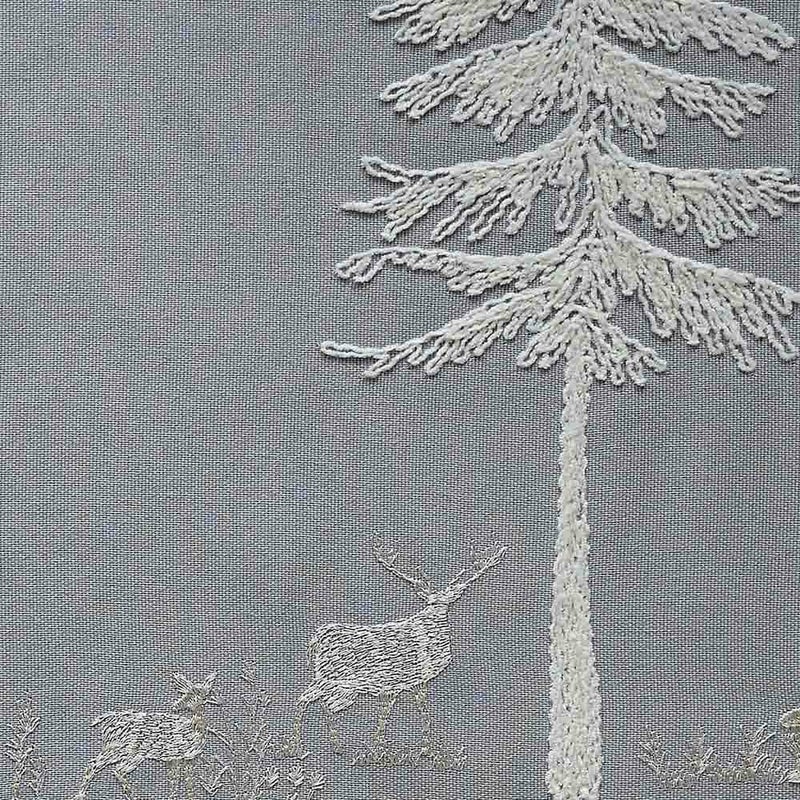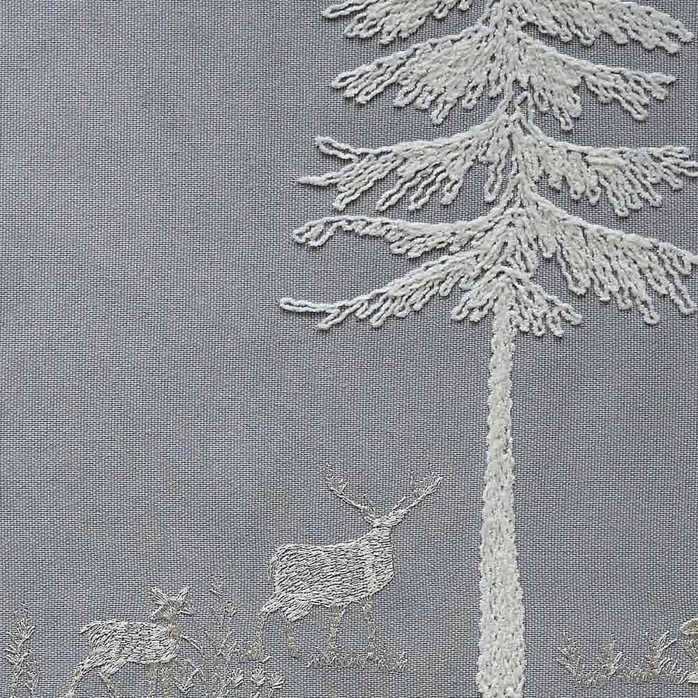 刺繍部分に毛羽感のあるモール糸を使用することで、デザインに凹凸がうまれ、奥行きを感じる仕上がりに。オーダーカーテンだからこそ叶う、手仕事のようなほっこりとした愛らしさ。室内にいながらにして北欧の世界に迷い込んだような気持ちにさせてくれる1枚です。