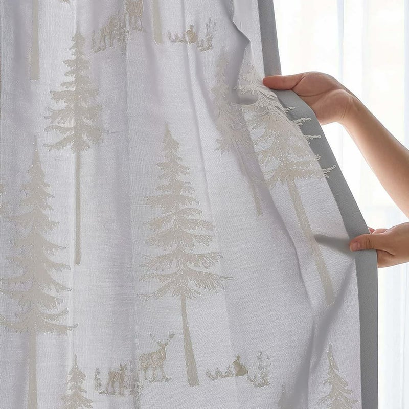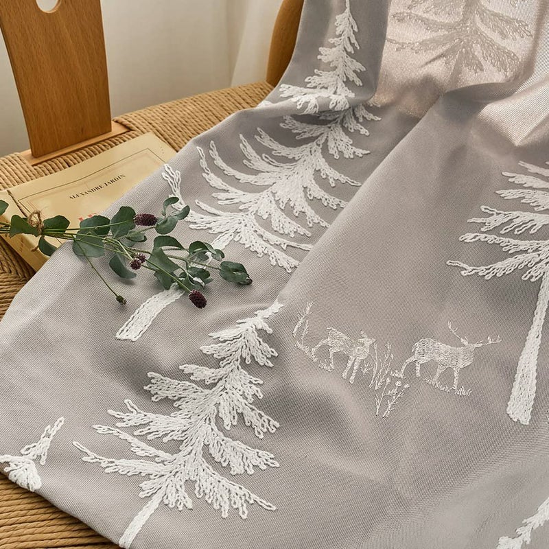 動物たちが集まる自然の風景を刺繍で描いた 心温まる非遮光カーテン