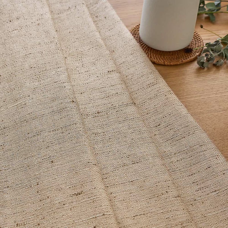 麻のようなざっくり感と、シルクのような繊細な光沢感。相反する要素がミックスされたテクスチャが、オーダーカーテンならではの味わい深さの秘訣。それでいて実はお手入れのしやすいポリエステル100%というのだから驚きです。