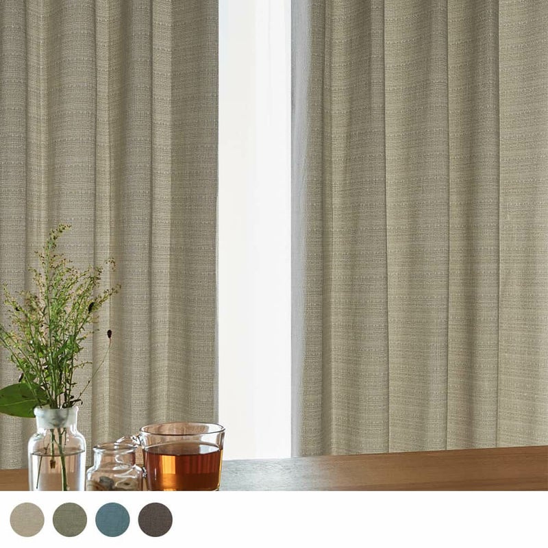 カーテンは長く使うものだからこそ、飽きの来ないベーシックなテキスタイルはやっぱり心強い。4色のカラーバリエーションは、どれも暮らしにすっと馴染む優しい色合い。日を通すと表情が変わるところまでもが愛おしいカラーリングです。