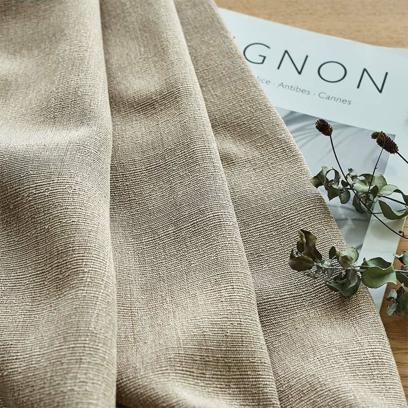 のっぺりとした無地ではなく、織り感を感じる立体的なテクスチャです。丁寧に丁寧に使い込んだようなヴィンテージ感が、心を惹きつけます。オーダーカーテンならではのこだわりがぎゅっと詰まった、おしゃれなこだわりを感じる1枚です。