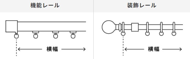 横幅の採寸方法は「機能レール」と「装飾レール」によって少し測り方が異なっています。