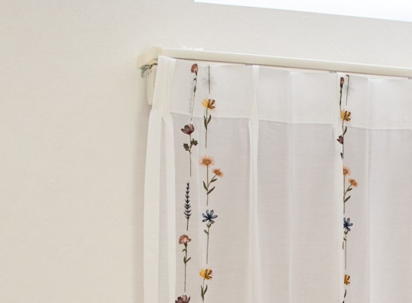 レースを部屋側(内側)に付けるとレース生地の軽やかさや柔らかい質感を感じられ、窓を開けた時にレースカカーテンがなびく様子も楽しめます。