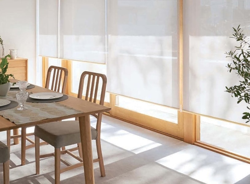 リビングは明るくしたいけれど、西日が気になるといった方におすすめなのが、遮熱ロールスクリーン。生地は薄手でありながらも遮熱の他、消臭、抗菌、抗カビといった嬉しい機能満載の商品です。