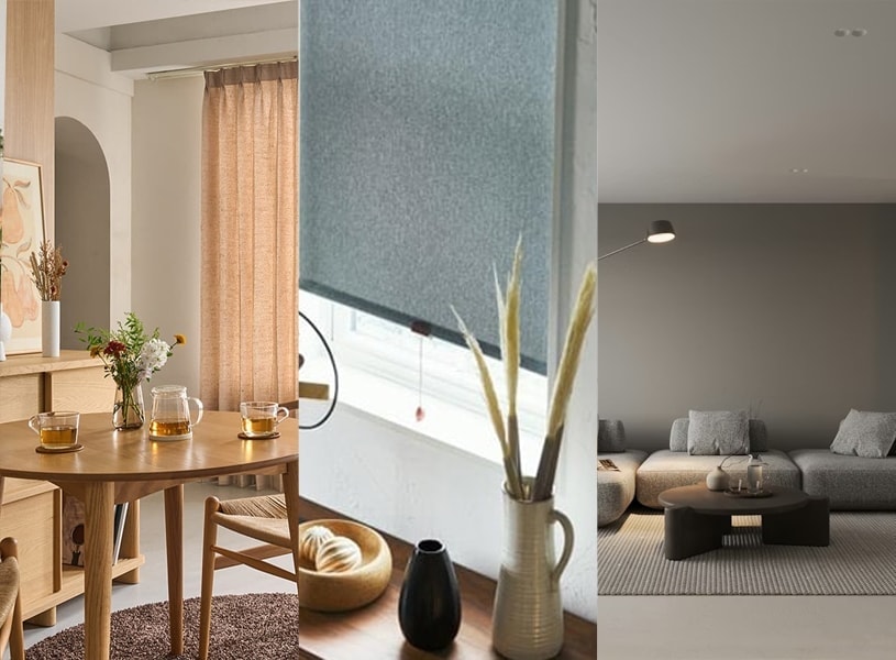 ここまでで、ロールスクリーンの色の大まかな方向性は見えてきているはずです。ベースが決まったら、次はその色をどんな雰囲気に寄せたいかを考えていきましょう。同じ色でも、選び方次第で、やさしくも、すっきりも、大人っぽくも見せることができます。