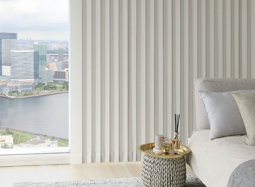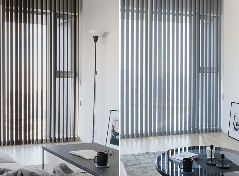 また、カーテンだとヒダが飛び出すことから圧迫感を感じやすいですが、バーチカルブラインドは縦にスッと伸びるシルエットから、カーテンと比較するととてもスタイリッシュな印象になります。
