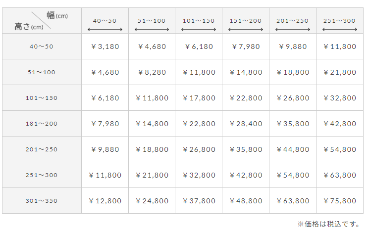 | サイズ | 100×140cm・140×200cm・200×200cm・200×250cm・200×300cm |
