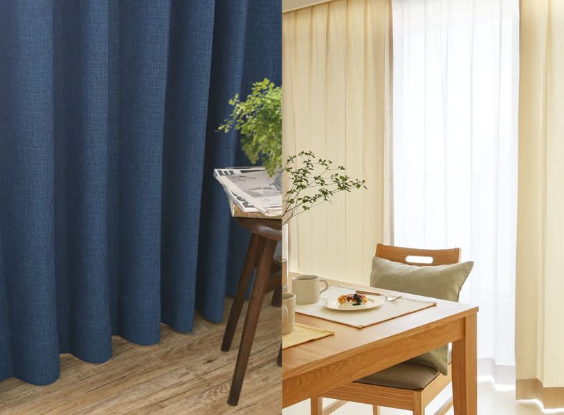どの役目を重視するかというのがカーテン選びの基本ですが、ネイビーやアイボリーといった色は、どの役目の部屋にも合わせられる色です。