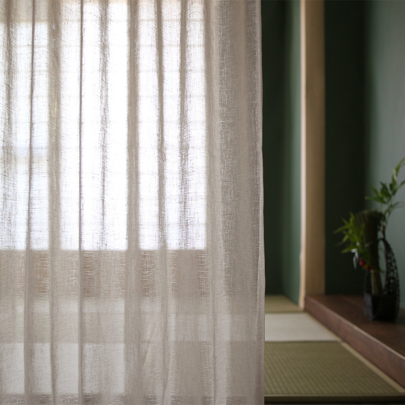 やわらかな光と風情に浸る、やすらぎのリネン調レースカーテン<風の音>