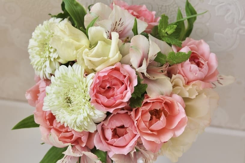 バラやラナンキュラス、王道のカーネーションなど、ふんわりとした花を合わせると、より女性らしく優しい雰囲気に仕上がります。