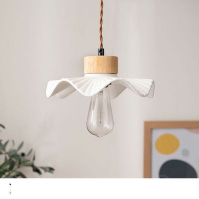 レビューを書く - ペンダントライト ひらひらシェードが愛らしい、陶器とウッドの灯り<セラミックフリル> | パーフェクトスペースカーテン館