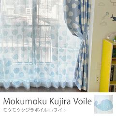 レビューを書く - キッズ レースカーテン 大きく広がる空に浮かぶ雲とくじらのデザインのレース <もくもくクジラ ボイル ホワイト> | パーフェクトスペースカーテン館