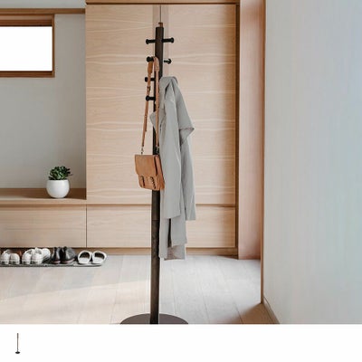 レビューを書く - 【最短・翌日出荷】玄関やリビングに映えるスリム設計、8つの互い違いフックが便利な木製&スチールフロアコートラック<ピラー コートラック> | パーフェクトスペースカーテン館