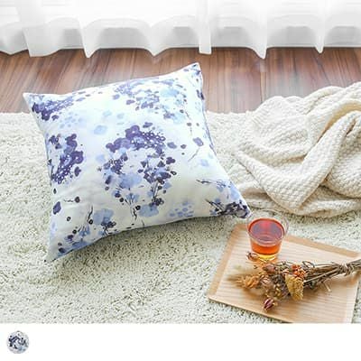 レビューを書く - クッションカバー 花柄オリジナルデザインカーテンと同柄のクッションカバー <ル・プティ・ボヌールクッションカバー ブルー> | パーフェクトスペースカーテン館