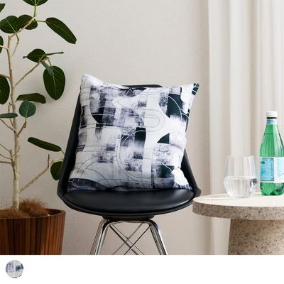 レビューを書く - アート カーテン モノクロームの美しさが広がる、当店オリジナルデザインカーテンと同柄クッションカバー <ライン クッションカバー> | パーフェクトスペースカーテン館