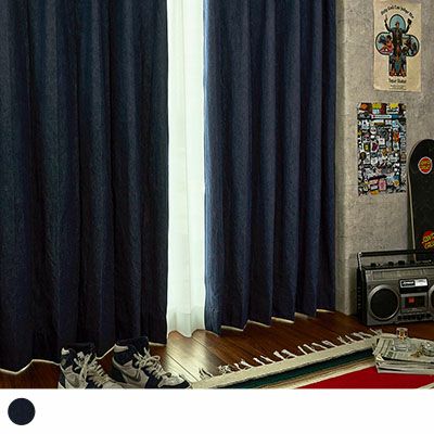 レビューを書く - 【最短・翌日出荷】デニムカーテン あの頃のデニムを部屋で纏う、70-80年代風デニムカーテン <スティーロ ネイビー> | パーフェクトスペースカーテン館