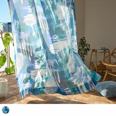 レビューを書く - 【最短・翌日出荷】アート レースカーテン 当店オリジナル!光に美しく輝き、風に揺れ動くアート。エモーショナルな空間が広がる <スプラッシュ ネイビー> | パーフェクトスペースカーテン館