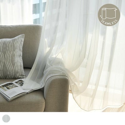 レビューを書く - ボイルレースカーテン 繊細なシルバーラインの輝きを忍ばせたストライプデザイン。継ぎ目のない、広窓仕様のレースカーテン <ディアム ホワイト> | パーフェクトスペースカーテン館