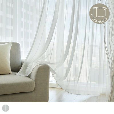 レビューを書く - ボイルレースカーテン モール糸と光沢糸、異なる2種類の糸を織り込んだストライプデザイン。継ぎ目のない、広窓仕様のレースカーテン <ルキウス ホワイト> | パーフェクトスペースカーテン館