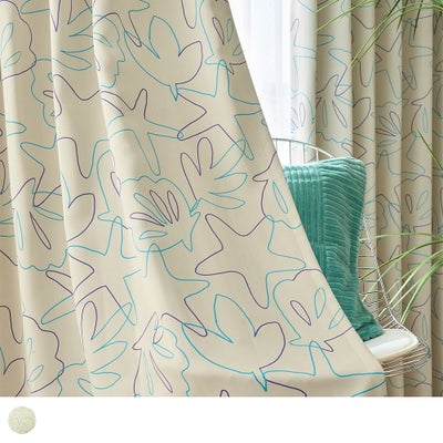 レビューを書く - 1級遮光カーテン シンプルでポップで、ちょっぴりユニーク!南国ムードなデザインがかわいい 当店オリジナルのプリントカーテン <シーサイドスケッチ アイボリー> | パーフェクトスペースカーテン館