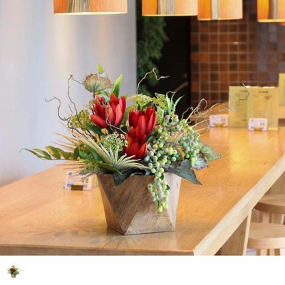 レビューを書く - 造花 コントラストの効いたカラーリングがハイセンスなアーティフィシャルフラワーアレンジメント<大地の赤> | パーフェクトスペースカーテン館