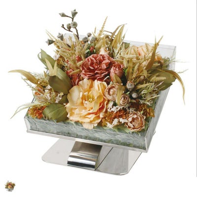 レビューを書く - 造花 くすみカラーの花々×スタイリッシュな花器のコンビネーションが麗しいフェイクグリーンアレンジメント<スモーキーシック・アレンジメント> | パーフェクトスペースカーテン館