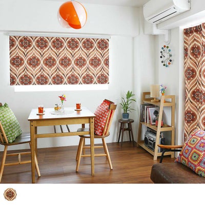 レビューを書く - 【ロールスクリーン】レトロ 遮光 レトロポップなフラワーロールスクリーンで、ワクワクのレトロ空間に! <キャンディフラワー ロールスクリーン ブラウン> | パーフェクトスペースカーテン館