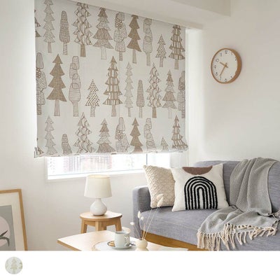 レビューを書く - 【シェード】北欧 2級遮光 当店オリジナル♪かわいい北欧のツリーを描いた、絵本のような世界 <ルオント シェード ベージュ> | パーフェクトスペースカーテン館