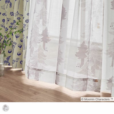 レビューを書く - 【ムーミン】レースカーテン ムーミン谷の森の木々に、ムーミン一家のキャラクター達が勢ぞろい!大人も子供も楽しめるボイルレースカーテン <プート グレー> | パーフェクトスペースカーテン館