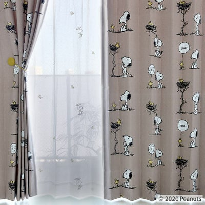 レビューを書く - 2級遮光カーテン 形状記憶付き スヌーピーとウッドストックの仲のいい関係が描かれた遮光カーテン <フレンズネスト ベージュ> | パーフェクトスペースカーテン館