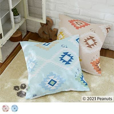 レビューを書く - 【最短・翌日出荷】おしゃれなネイティブデザインの中で遊ぶスヌーピーとスパイクが描かれたクッションカバー <コーストライフ> | パーフェクトスペースカーテン館