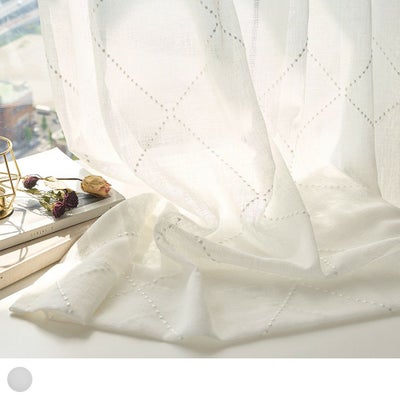 レビューを書く - ボイルレースカーテン 織り感のあるナチュラルな風合いに、立体的なドット刺繍でダイヤ柄を描いた上質なレースカーテン <アリアドネ ホワイト> | パーフェクトスペースカーテン館