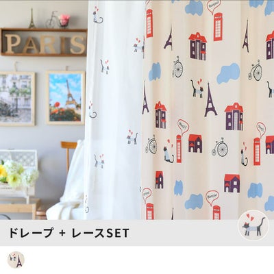 レビューを書く - レースカーテンセット お洒落な黒猫のミネットが描かれた「ミネット」×お揃いレース <ミネットセット> | パーフェクトスペースカーテン館