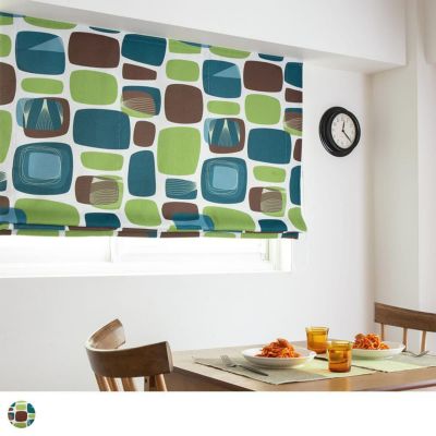 レビューを書く - シェードカーテン 幾何学柄がミッドセンチュリーらしいシェードカーテン <フィン シェード ヴィンテージホワイト×ビリジアン> | パーフェクトスペースカーテン館