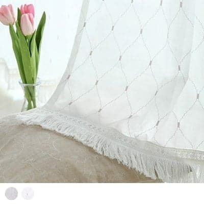レビューを書く - 韓国インテリア フリンジカーテン タイルのような大きい模様が刺繍で施された、柔らかな印象のフリンジレースカーテン <ヘンボッケ フリンジ> | パーフェクトスペースカーテン館