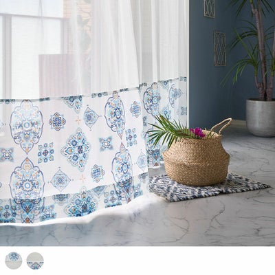 レビューを書く - レースカーテン プレーンなボイルレースにモロッカン柄をあしらった、当店オリジナルのジョイントレースカーテン <ガミラブルーレース ジョイント> | パーフェクトスペースカーテン館
