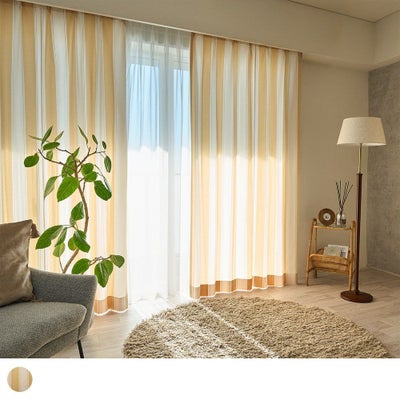 レビューを書く - 【アウトレット】ヨーロピアンスタイル 爽やかなストライプ柄カーテン 非遮光 <EK8473 イエロー> | パーフェクトスペースカーテン館