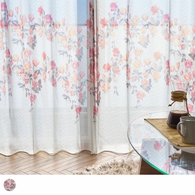 レビューを書く - 【アウトレット】ブーケのようにお部屋を彩るローズ柄レースカーテン<ヴォワール ピンク> | パーフェクトスペースカーテン館